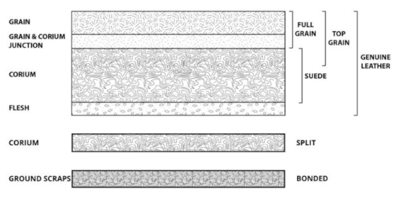 Split Leather: Derived from the fibrous corium layer, this material is produced once the grain-side top layer has been separated. It represents the resilient, inner section of the hide..